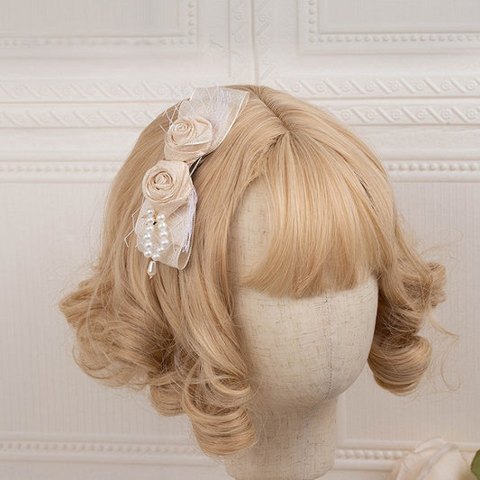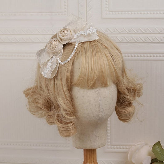 Details with and Tulle Rose Bow Champagne Hairclip Bead Lolita Vintage
