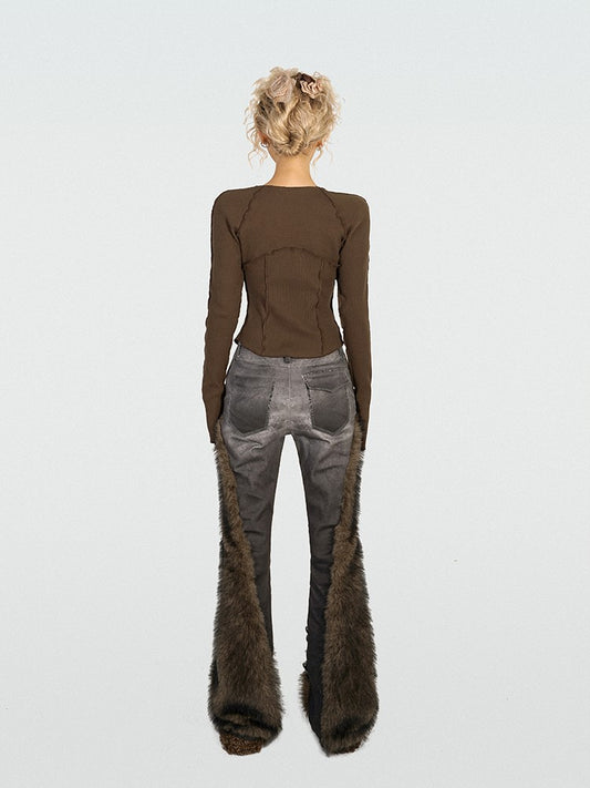 Flared Grey Denim Slim-fit Vintage Jeans Wash