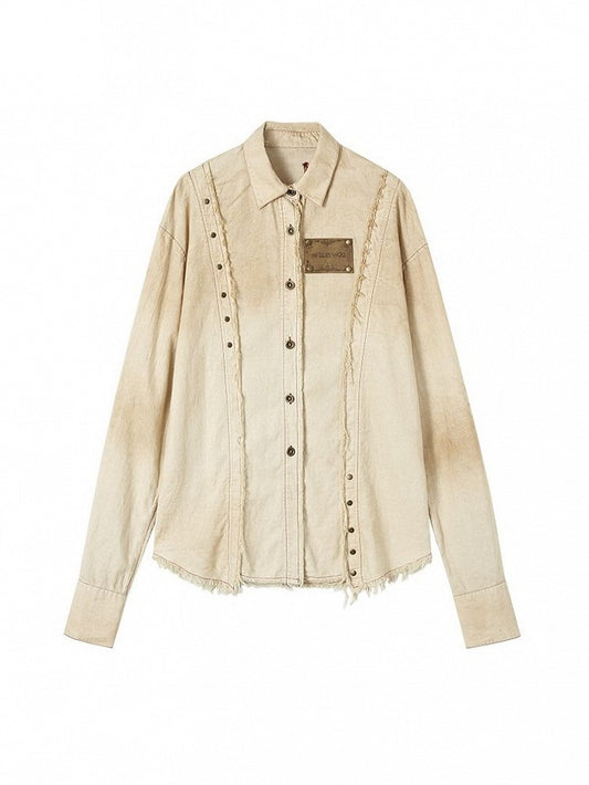 Distressed Shirt Cotton-linen Vintage Punk White