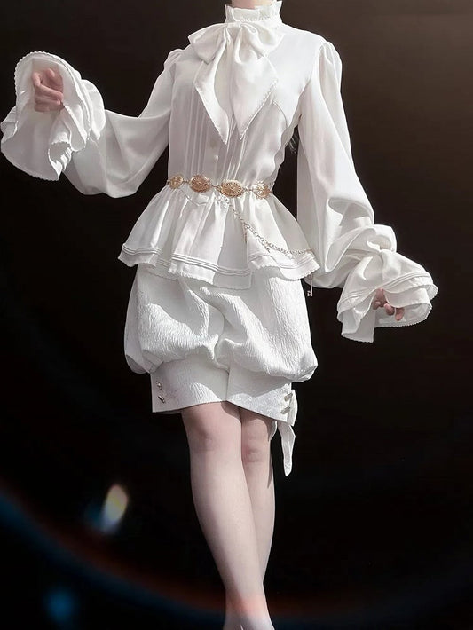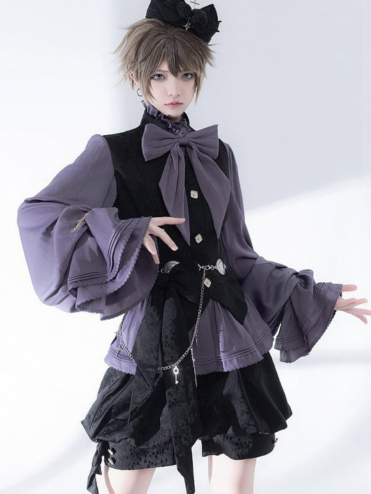 Tie Black Puff Sleeves Vintage Gothic Blouse with Detachable Jabot