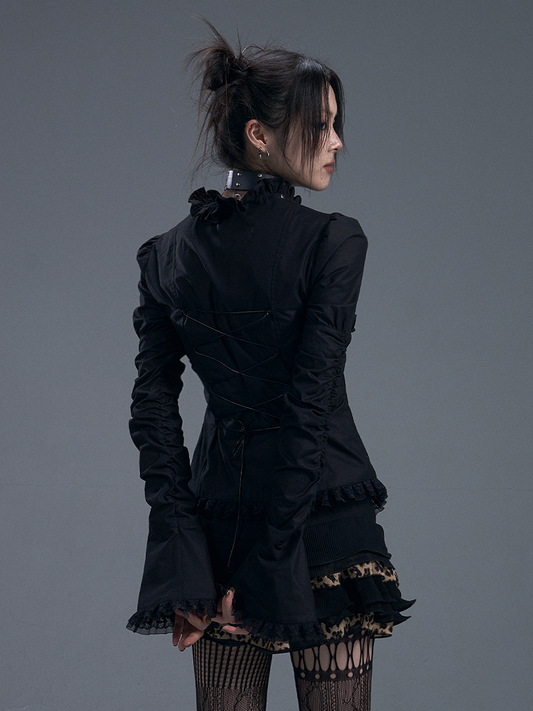 Lace-Trimmed Zipped Black Gothic Vintage Top