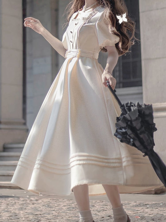 Neckline Dress and Square Elegant Vintage Apricot with Short Sleeves Puff