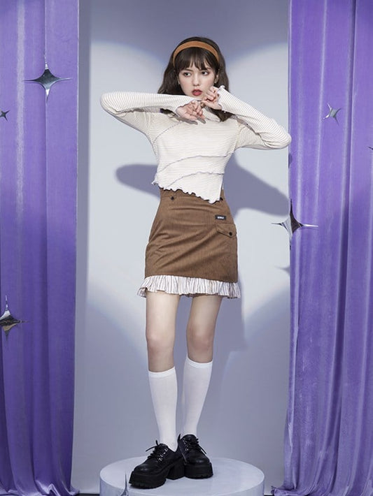 Waist Skirt High 64CM Clearance-Size Corduroy Vintage for S