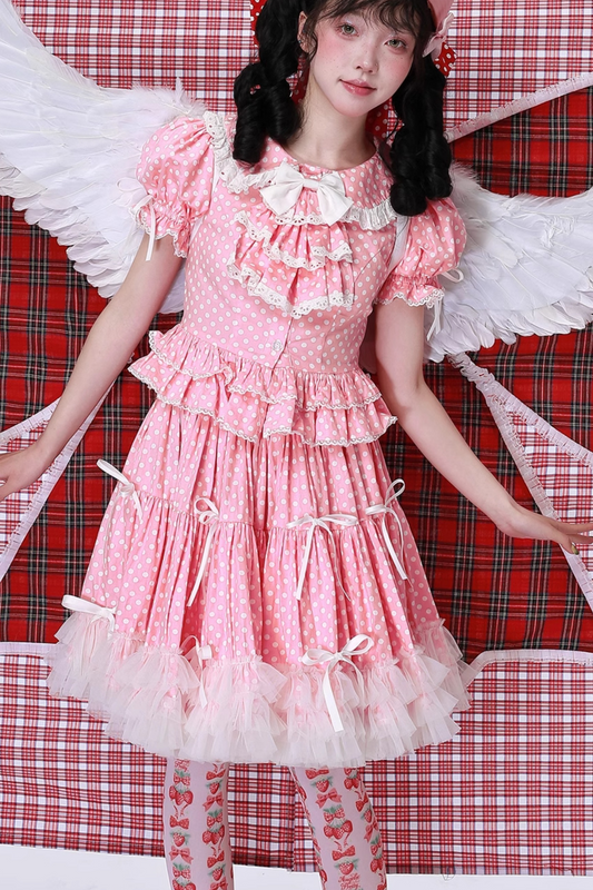 Piece Pink Lolita Dress One Vintage Teddy Bear Print Sweet Light