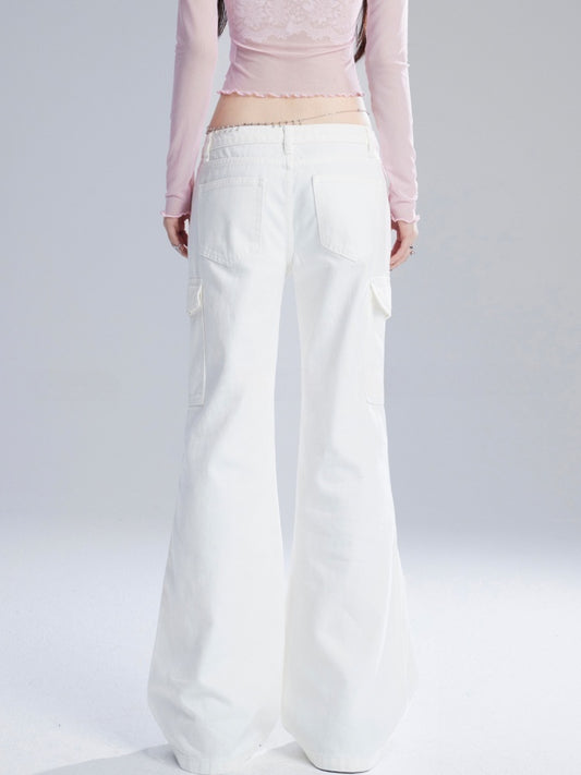 Jeans White Low Flared Waist Vintage Glamorous