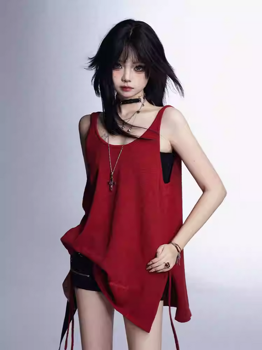Bustier Tank Top Black Glamorous Red Side Slit Vintage Set with Top