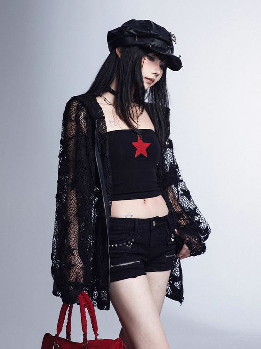 Glamorous Vintage Black Slim-fitting Bustier Top Red Star Print Cropped
