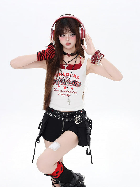 Faux Red Navy Blue/White Two-pieces Tank Top Letter Print Vintage Glamorous