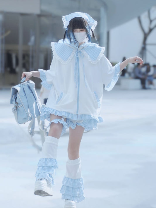 White Blue Bunny Ear Design Hooded Jacket and Free Collar