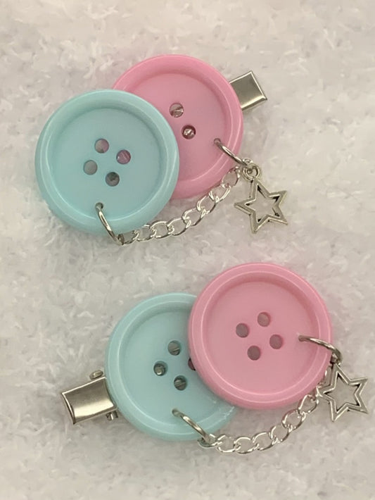 Blue and Pink Button Hairclips