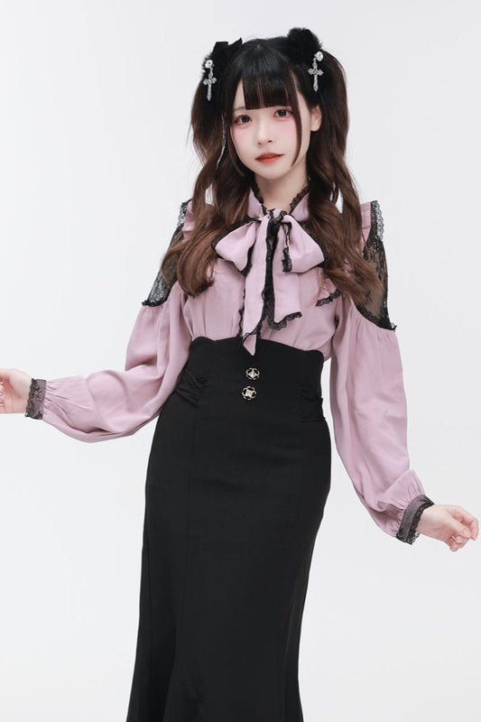Off-the-Shoulder Mine Flared + Skirt Ribbon Reservations Top