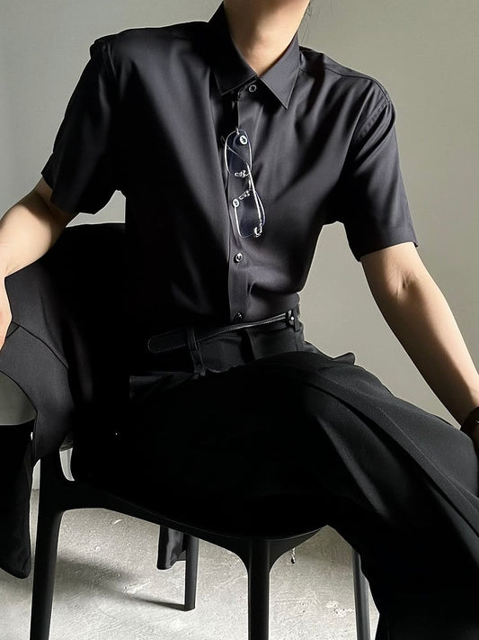 Modal Button Placket Unisex with Gray Lolita Long Light Flat Shirt Ouji Sleeve Collar Pointed