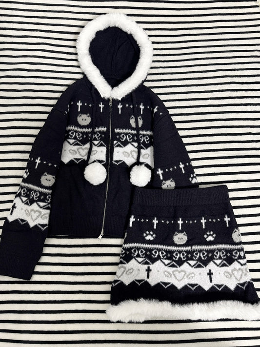 Plush Fair Set Black Isle Sweater Skirt and Knit with Accents