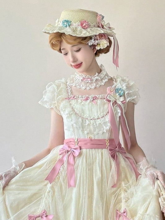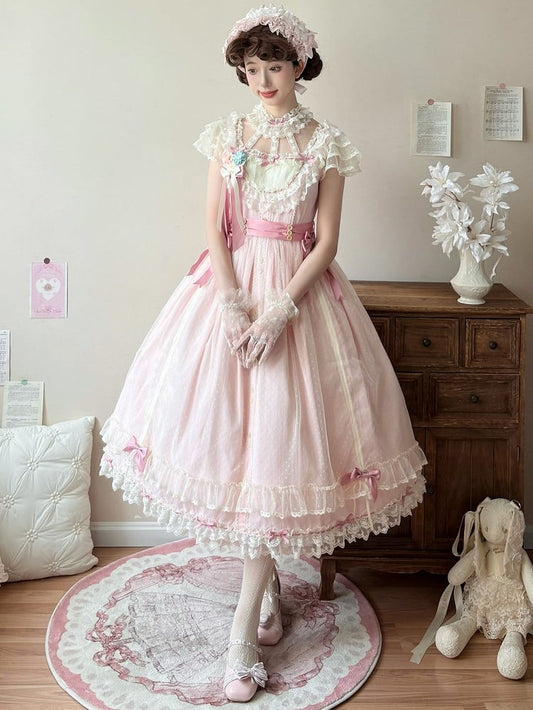 Pink with Bow Details Version Lolita Elegant Classic Dress Lace Long and