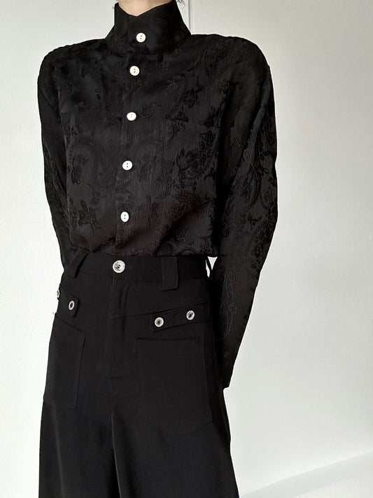 with Black Mandarin Floral Collar Shirt Embroidery Long-Sleeve Lolita Ouji