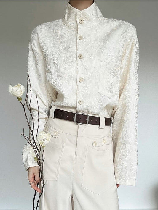 Mandarin Floral Embroidery Shirt Long-Sleeve Collar with Lolita Apricot Ouji
