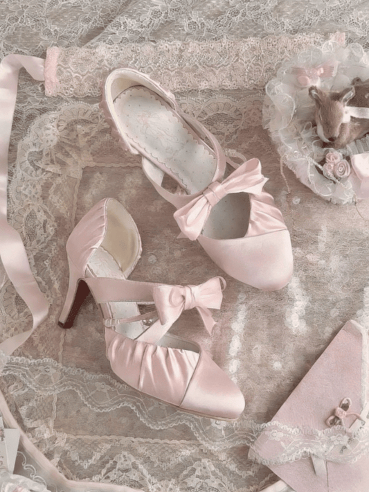 Lolita Satin - Accents Heels Toe Bow Pink Mary Jane Pointed Elegant