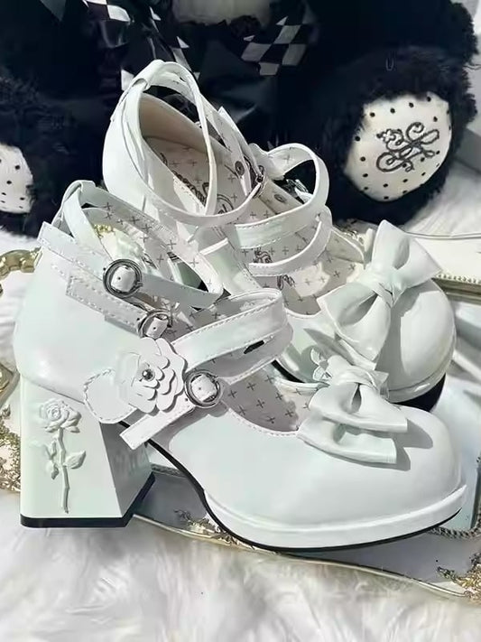 Details Polished Accent White Rhinestone Bow Low-heel PU Heart