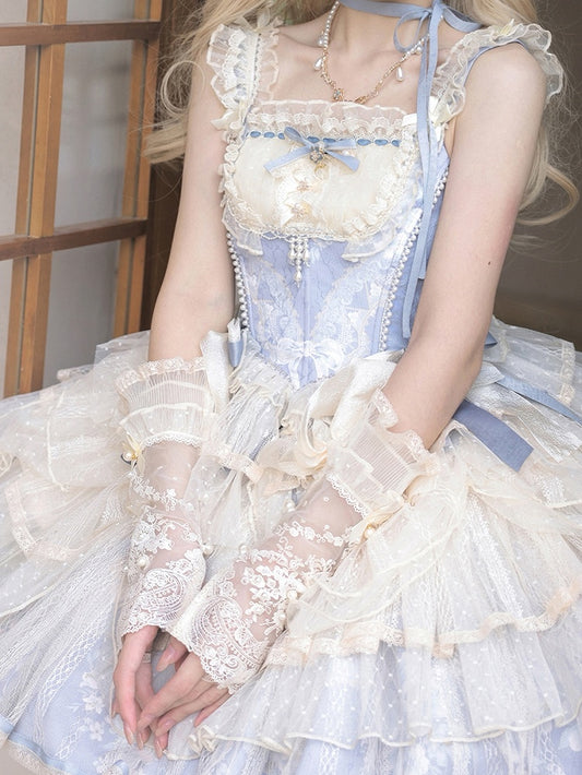 Abnehmbar mit Lolita Plus Cotton Classic Verfügbare blaue Größen Schmetterlingsweißkleidärmel und