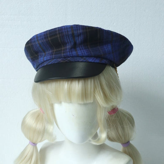 Dunkelblau/Rot/Grün kariertes Baskenmütze