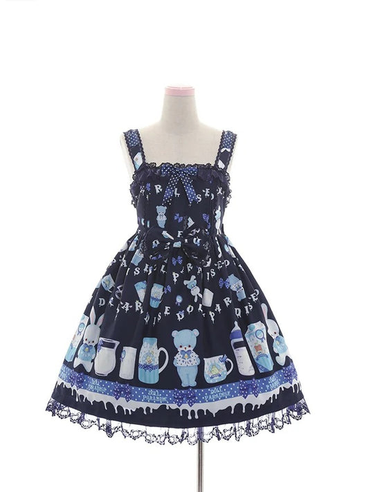 Niedlicher Bärendruck Blau/Marineblau Taille Hellblau Empire