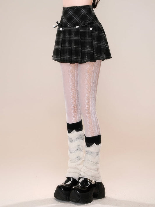 Schwarzer Rock mit abnehmbarer Schleife und Karomuster