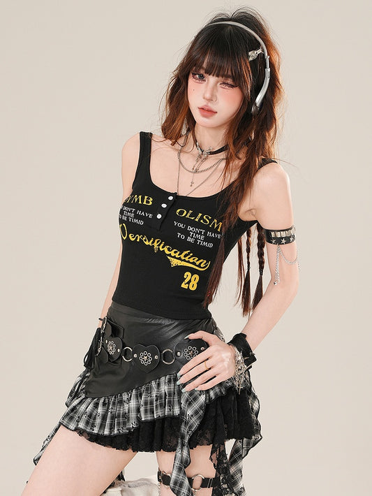 Schwarzes Tanktop mit Buchstabenmuster Glamorous