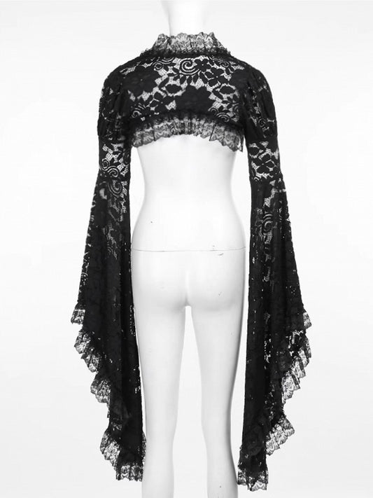 Black Lace Shrug Embroidery Sleeve Floral Trim Bell Gothic Halloween with