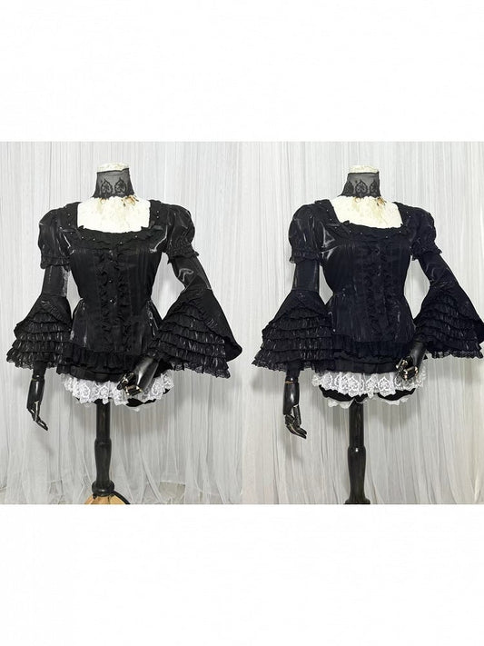 Schwarzes Lolita-Hemd mit Ärmeln, geschichtet, wunderschöne Glocke, ganz lang, Gothic Kuro