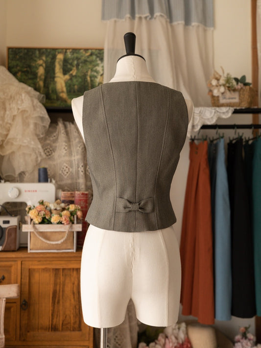 Graue, zweireihige Weste unter der Brust