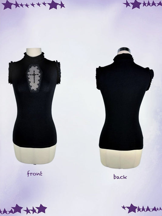 Neck Cutout Black Mock Sleeveless Gothic Top Coffin-Shaped