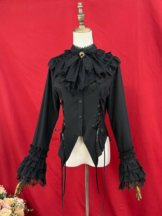 Short Black Sleeves Lolita Puff Gothic Split-Tail Shirt Ouji