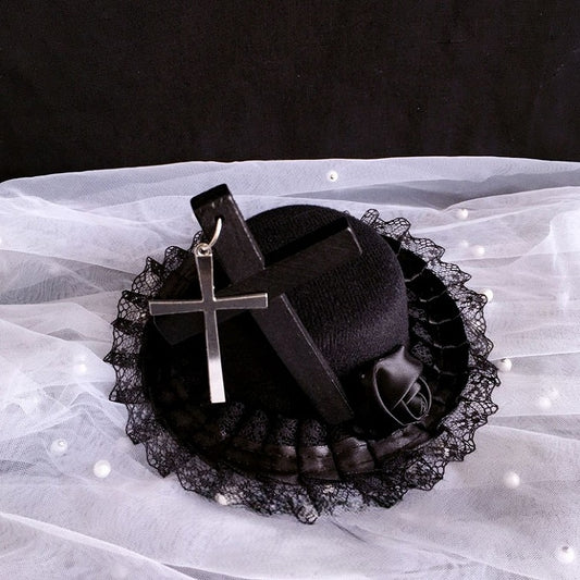 Black Cross Lace Gothic with Hat Accents Rose Mini