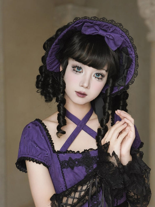 Lolita with Gothic Bows Bonnet Lace Blue/Purple/Green/Red and Trim