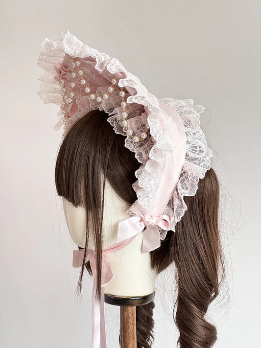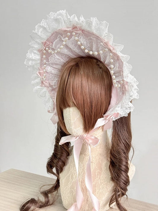 Bonnet Pearl (Lace Accents) Pink Chain Lolita Pastel