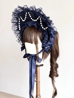 Blue Chain Accents) Lolita Sweet Pearl Bonnet (Lace Navy