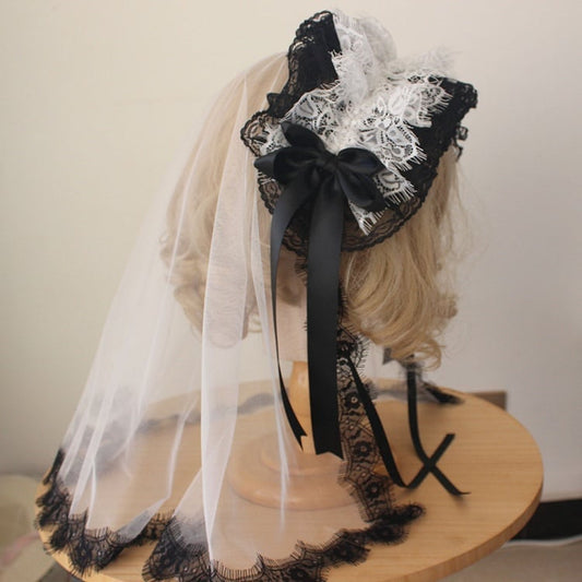 Black Floral Bonnet Design Gothic / Lolita Hairband