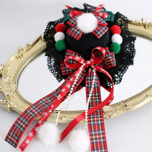 Plaid Lace Bear-Themed Hat with Christmas Mini
