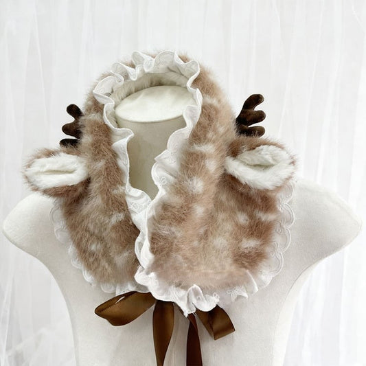 Tied Deer Lolita Sweet Lace Hat Trim Plush Earflap Spotted