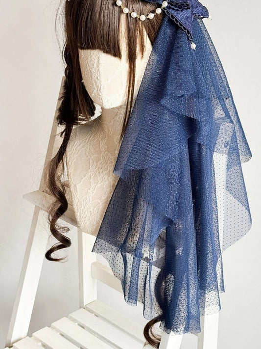 Veil KC with Pearl (Lace Navy Blue Lolita Head Accents)