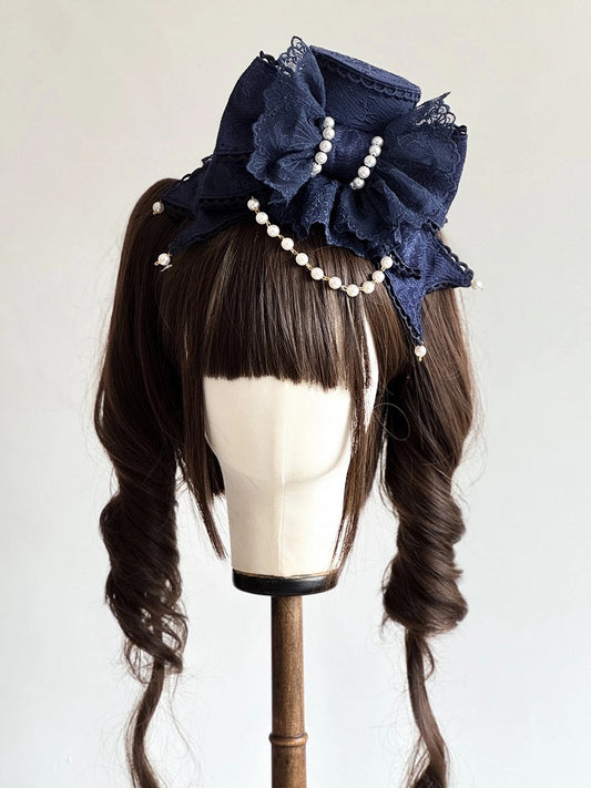 Blue Chain Navy Mini Lolita (Lace Accents) Hat Pearl