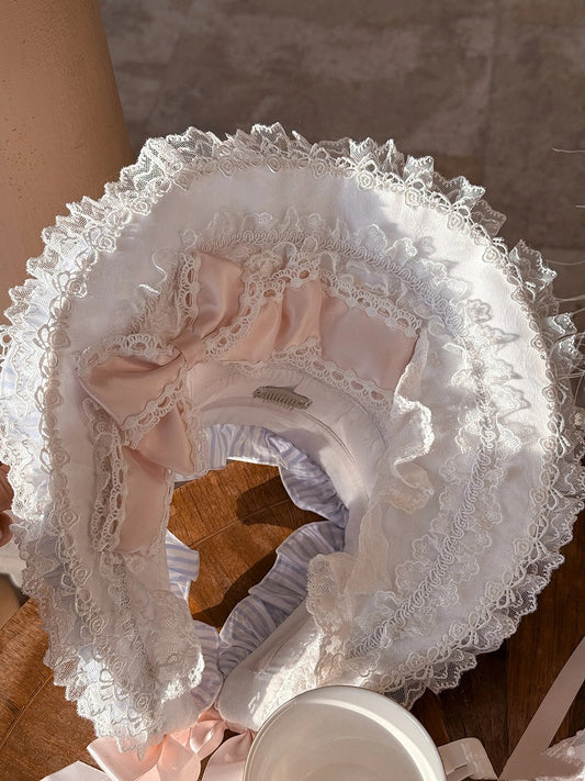 Schule Old Pink Trim Bonnet Lace Lolita Yellow mit Bowknot Details