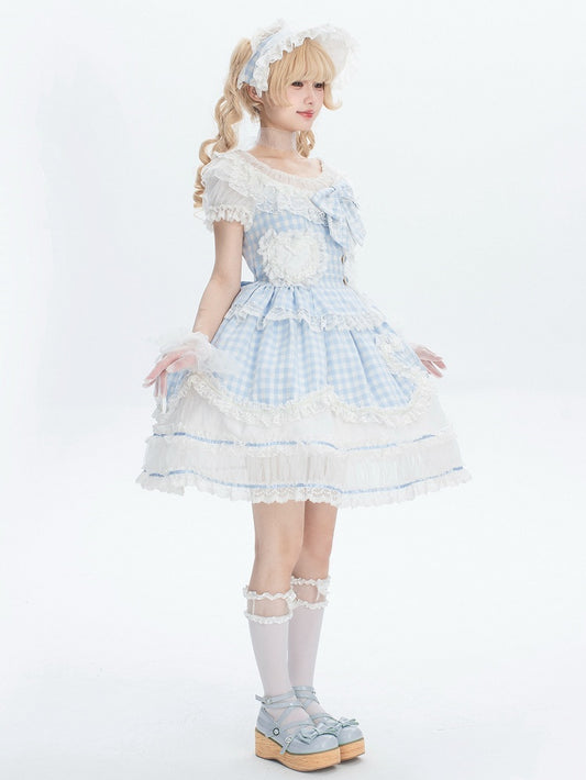 Schleifen-Haarspangen Idol Lolita Rot Kariert
