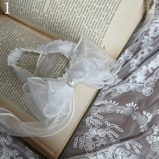 Weiße Unterkneestrümpfe aus Tüll mit Rüschen und Schleife