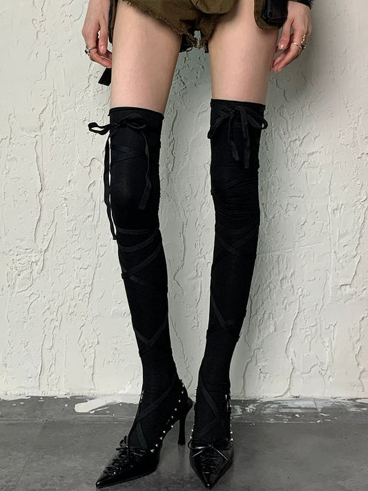 Straps Unterknee Strümpfe Y2K Selbstbinden Grau