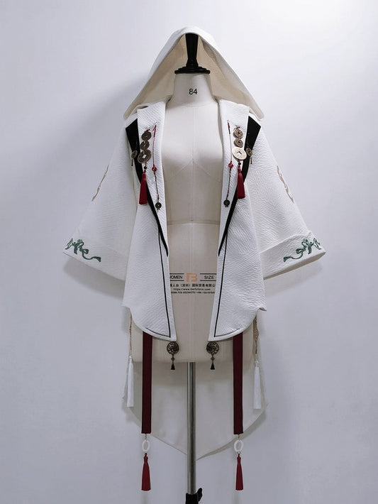 Top with Copper Hooded Ouji Charms Fashion and Chinoiserie Coin Jacquard Tassel White