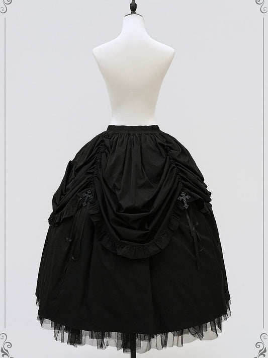 Drawstring Lolita Black Detail Long Skirt Gothic