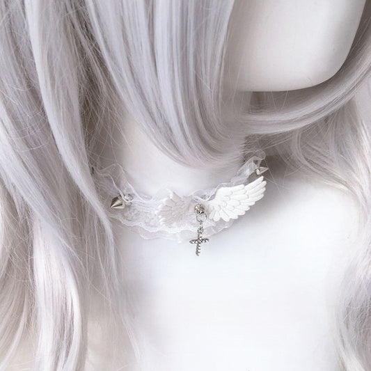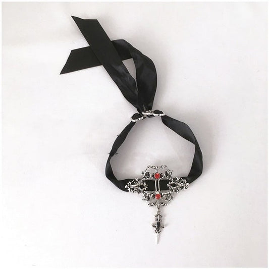 Choker Lace-up with Black Embellishments Gothic Pendant Rhinestone Cross