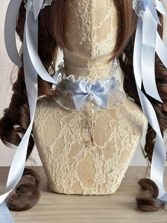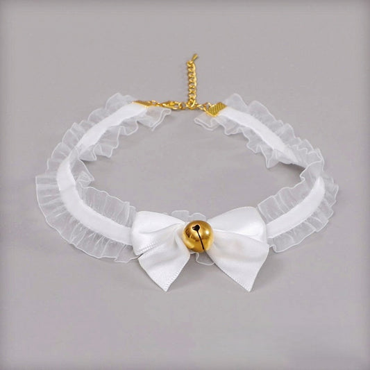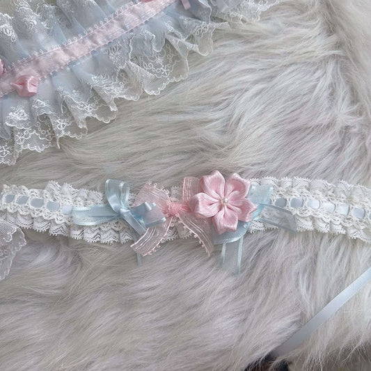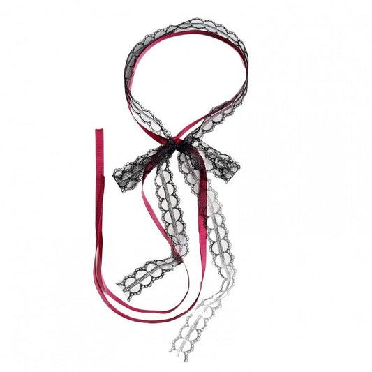 Bow Bell Choker Decorated Black/White/Pink Lace Cute