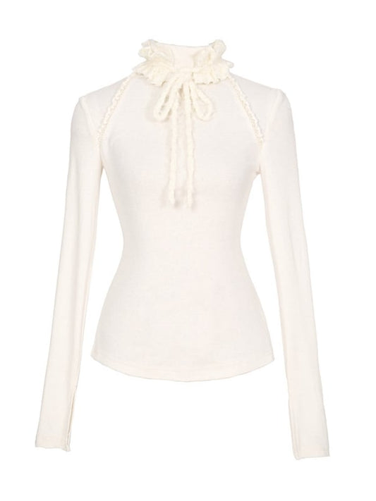 Choker Cream Long White Neck Knitted with High Top Ruffled Stretchy Sleeves
